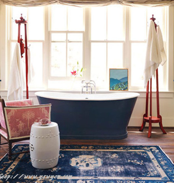 藍(lán)色:天的顏色海的顏色,給人無限想象空間,所以藍(lán)色浴缸怎么可以漏掉。這款藍(lán)色浴缸造型古典婉約,深藍(lán)色缸體表面搭配白色釉面內(nèi)襯相得益彰,浴缸容量充足,放上一池溫水保你泡得一個(gè)好澡.