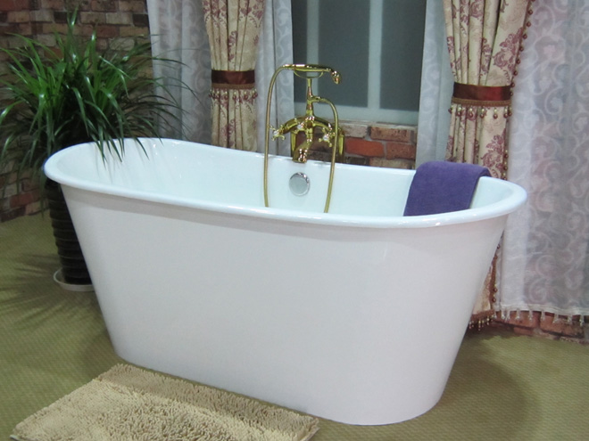 獨(dú)立式雙層浴缸(外部為直邊裙邊鋼板外套,內(nèi)部為鑄鐵缸體)